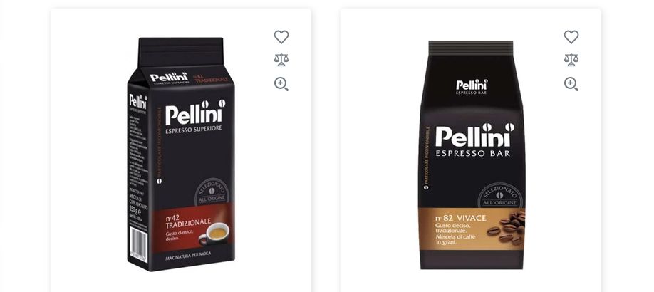 Покупці мають змогу ознайомитися з цінами та основними характеристиками. Наприклад, мелена кава Пеліні Espresso Superiore (250 г) коштує 224 грн, а кілограмова пачка зернової кави Пеліні Espresso bar №82 Vivace — 910 грн. Таким чином, покупець завжди знає, за що платить, обираючи свою ідеальну каву Пеліні.